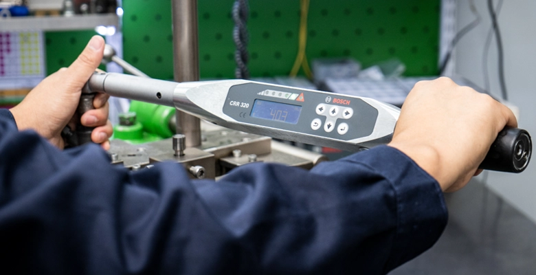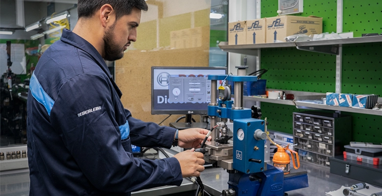Herramienta calibrada por BOSCH, la cual conectada a un software, permite efectuar torques exactos en el armado de inyectores.