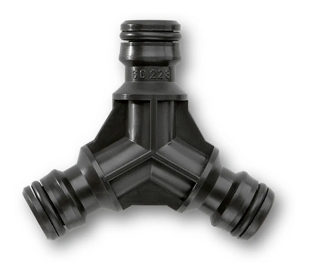Los conectores de grifo, los conectores de manguera y las mangueras confiables son esenciales para un sistema de riego eficiente. Kärcher ofrece una gama completa de accesorios para conectar, desconectar y reparar sistemas de riego. Por ejemplo, el conector de tres vías para conectar tres mangueras. Este conector de tres vías universal de alta calidad es adecuado para todas las mangueras de jardín estándar y tiene un diseño ergonómico para un fácil manejo. Conector de tres vías compatible con los tres diámetros de manguera más utilizados y todos los sistemas click disponibles.
