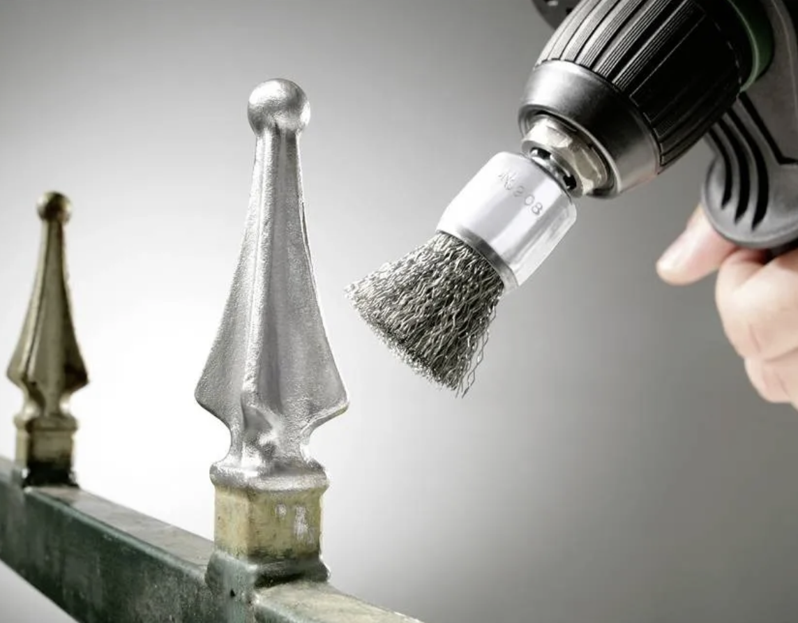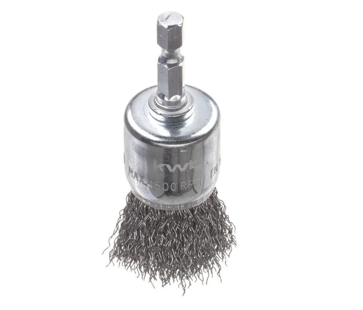 Cepillo circular, alambre de acero HSS, ondulado, para quitar herrumbre, pintura, cascarilla, incrustaciones y rebabas, para metal y piedra, ideal para todos los trabajos en cantos estrechos, marcos, postes de puertas, rejillas y tubos.