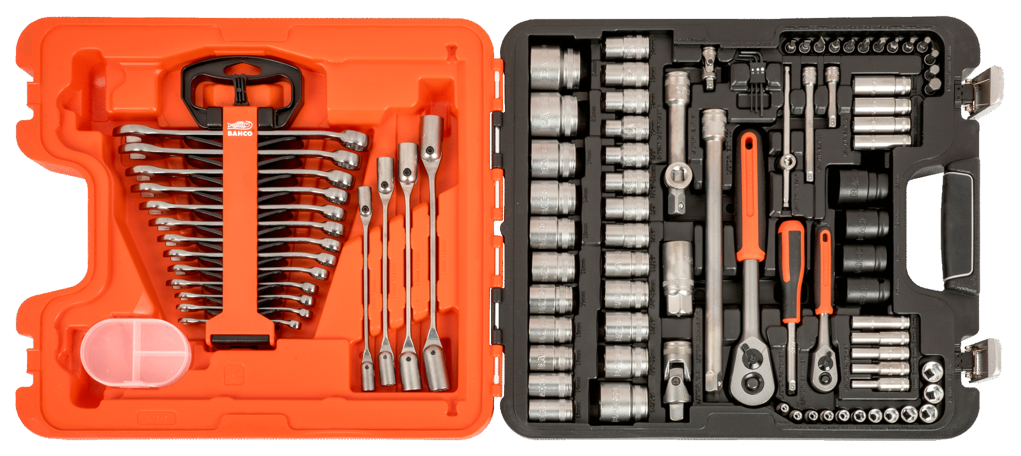 Juego de vasos de 1/4″ y 1/2″ y llaves combinadas – 94 piezas S87+7 Bahco