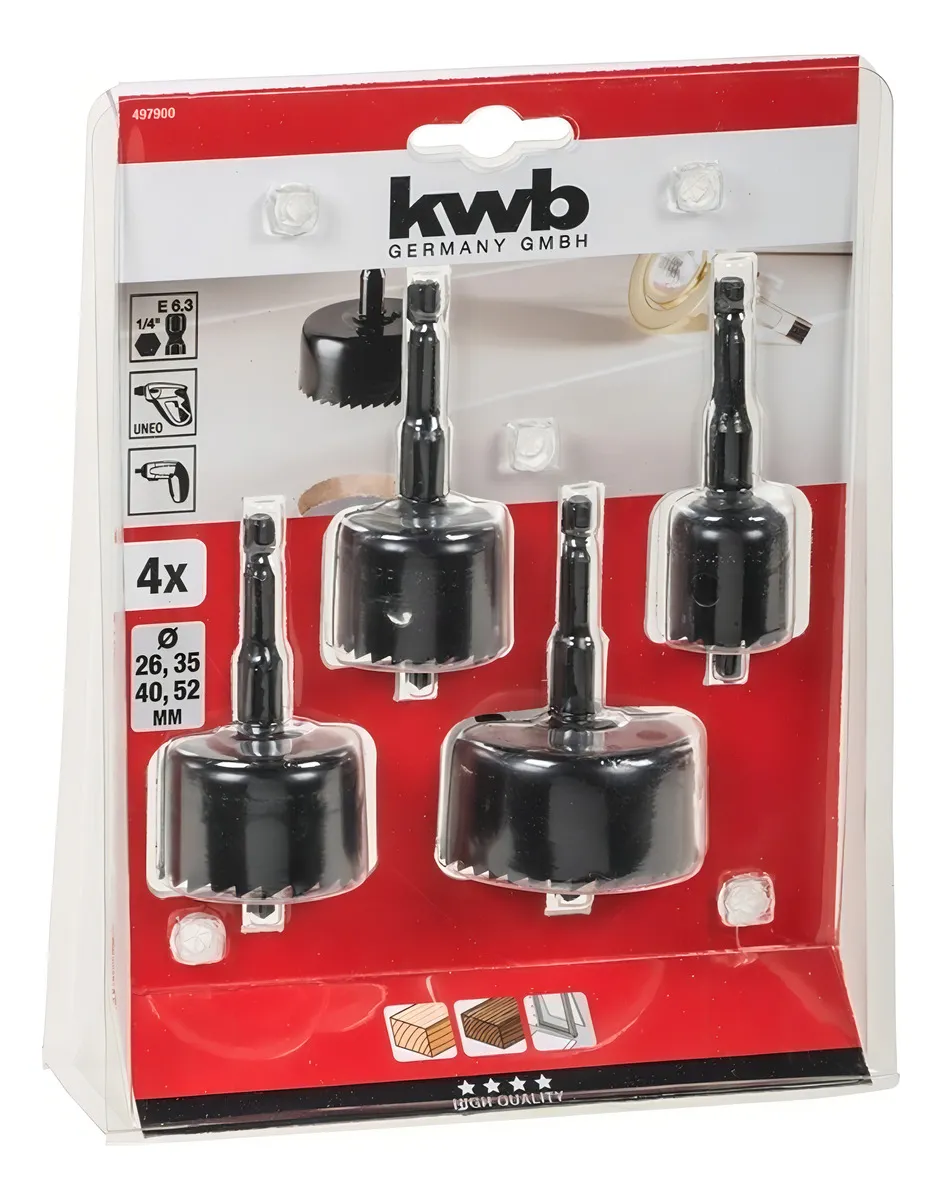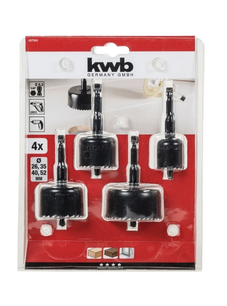 Kit Juego Hoja Broca Sierra Copa P/ Madera 4 Pcs Kwb 497900