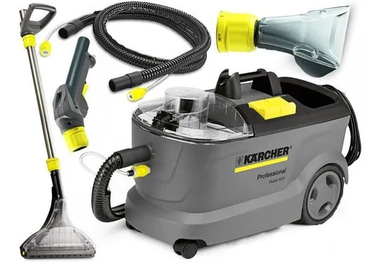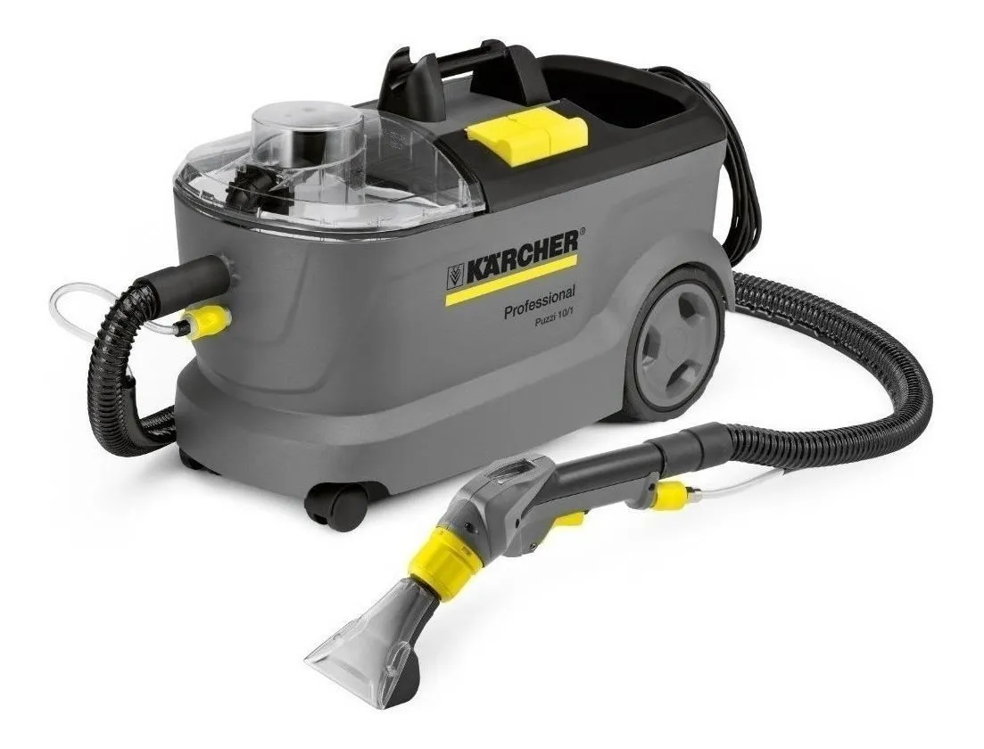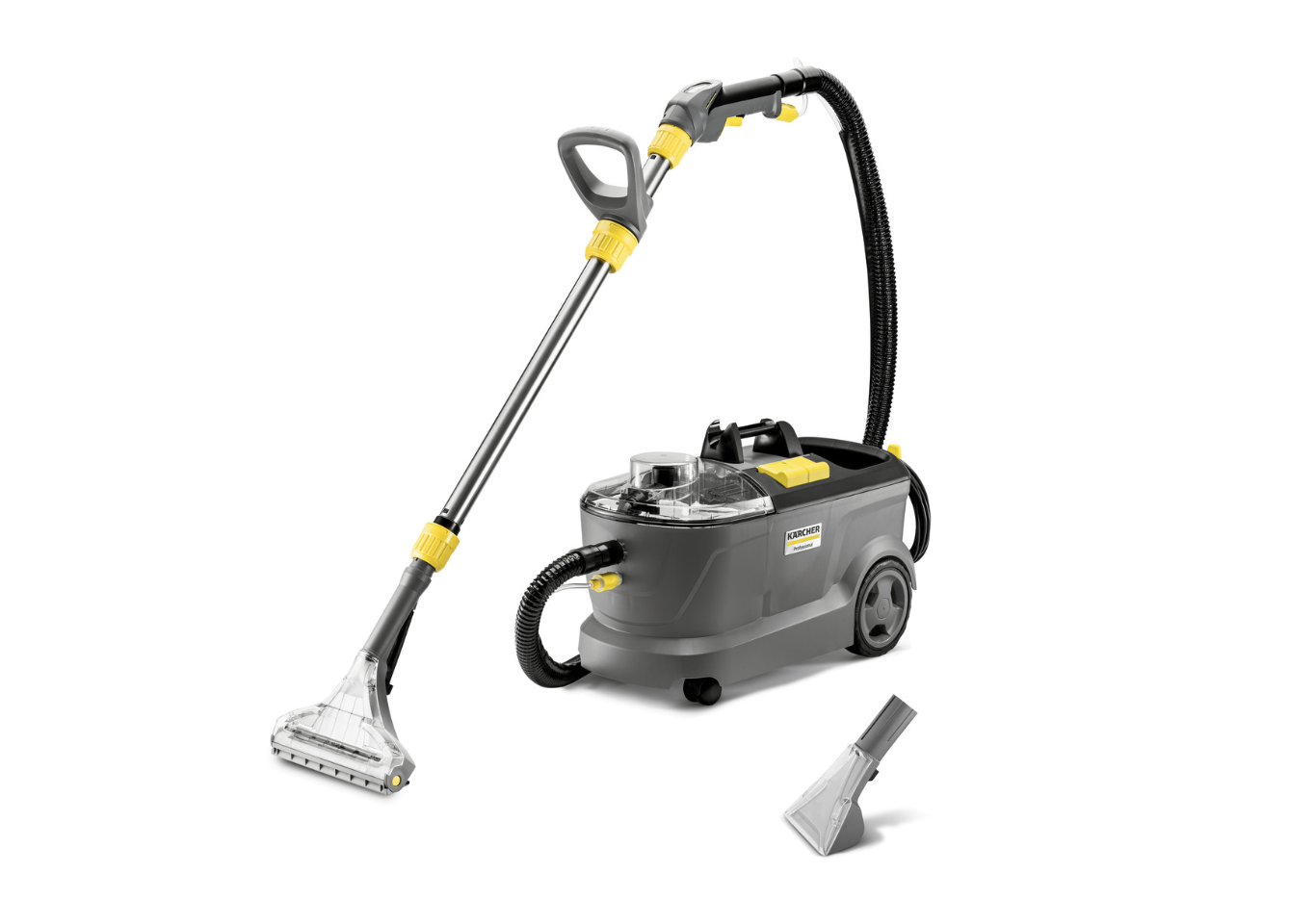 LAVA-ASPIRADORA Puzzi 10/1Puzzi 10/1 con boquilla para suelos / boquilla para tapicerías para la limpieza de alfombras/tapicerías mediante pulverización y aspiración combinadas. Ideal para superficies pequeñas. Con un gancho portacables integrado y fijación para herramienta manual / tubo de aspiración.