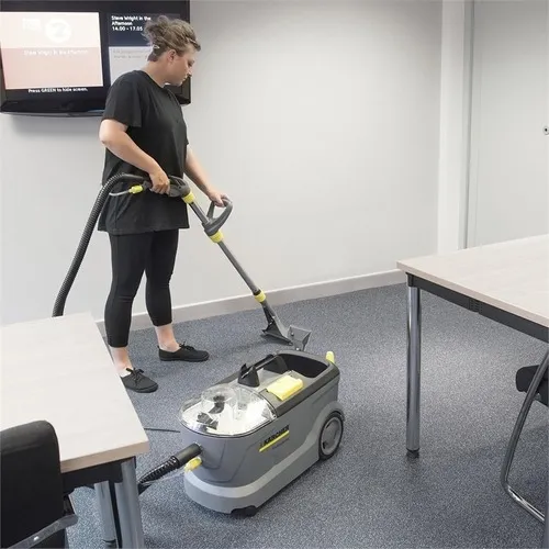 Puzzi 10/1 con boquilla para tapicerías y boquilla para suelos es perfecta, sobre todo, para la limpieza higiénica y eficaz de superficies medianas y pequeñas. Con una presión de pulverización de 1 bar, el equipo de pulverización y aspiración combinadas proporciona una limpieza respetuosa y en profundidad de superficies textiles y ofrece unos resultados sorprendentes especialmente en la limpieza de tapicerías y alfombras. Gracias a la fina boquilla para suelos, el equipo también es óptimo para el uso en espacios estrechos. Y mediante el labio de aspiración flexible también pueden limpiarse sin problemas zonas muy repletas. El equipo de pulverización y aspiración combinadas está equipado con un gancho portacables integrado y una fijación para herramienta manual y tubo de aspiración.