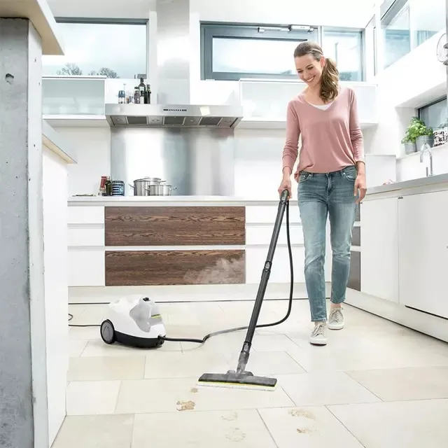 Detalles del productoLa limpiadora de vapor SC 4 EasyFix ofrece una gran comodidad y destaca por incluir un compartimento para el cable, un compartimento de almacenaje para los accesorios y una posición de estacionamiento para la boquilla para suelos. Gracias a su articulación flexible, la boquilla para suelos EasyFix ofrece la máxima ergonomía y la tecnología de láminas consigue resultados impolutos. El cómodo sistema de cierre de autofijación permite fijar de manera sencilla y rápida el paño para suelos de microfibra a la boquilla para suelos y retirarlo sin entrar en contacto con la suciedad. Las dos posiciones de regulación permiten ajustar la intensidad del vapor en función de la superficie y la suciedad. Los variados accesorios devuelven el brillo rápidamente a las baldosas, la placa de cocina, la campana extractora y hasta las ranuras más pequeñas, incluso con suciedad resistente. El depósito de agua extraíble y rellenable de forma permanente permite limpiar sin interrupciones. La SC 4 EasyFix limpia sin productos químicos y es ideal para su uso en toda la casa. Con una limpieza en profundidad con la limpiadora de vapor de Kärcher se elimina hasta el 99,999 % de los coronavirus* y el 99,99 % de todas las bacterias comunes** de las superficies duras que se encuentran normalmente en el hogar.