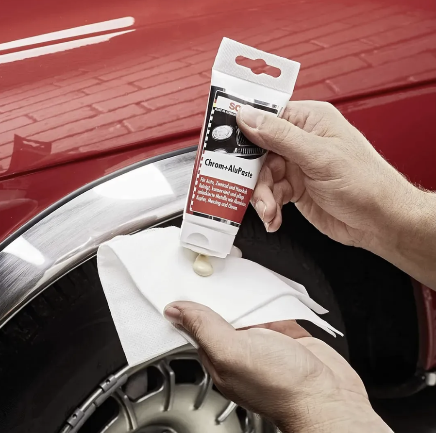 Esta pasta es un producto con abrasivos especialmente diseñada para su uso en aluminio y en decoraciones metálicas de cobre, latón y cromo. Elimina el óxido y los puntos opacos en forma rápida y eficaz. Remueve la suciedad, la corrosión y, al mismo tiempo, le devuelve a la superficie tratada su resplandor original y crea una capa protectora.
