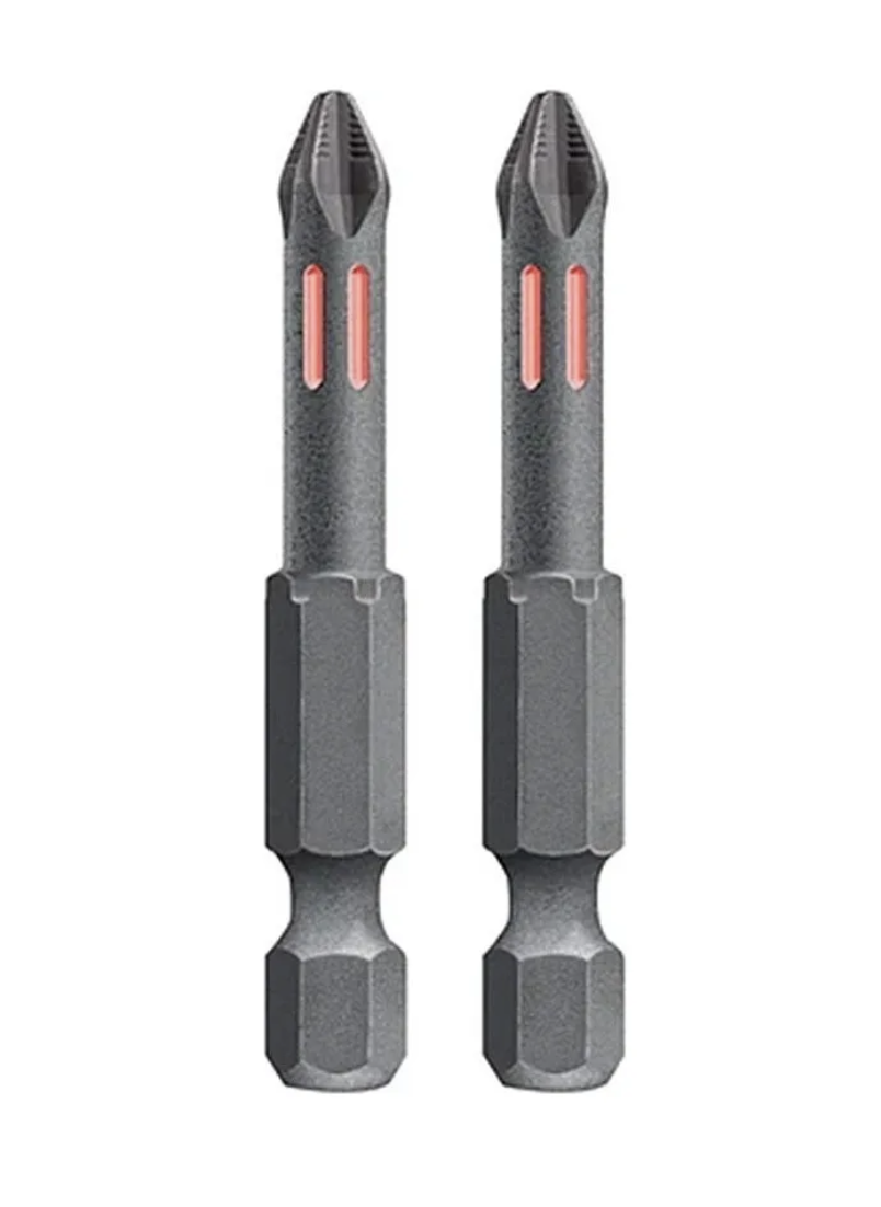 Puntas de 25 mm con vástago de ¼ pulgada C 6.3, de 50 y 100 mm con vástago de ¼ pulgada E 6.3 fabricadas en acero S2 de dureza superior a la media para un rendimiento adecuado en diversas tareas de trabajo.