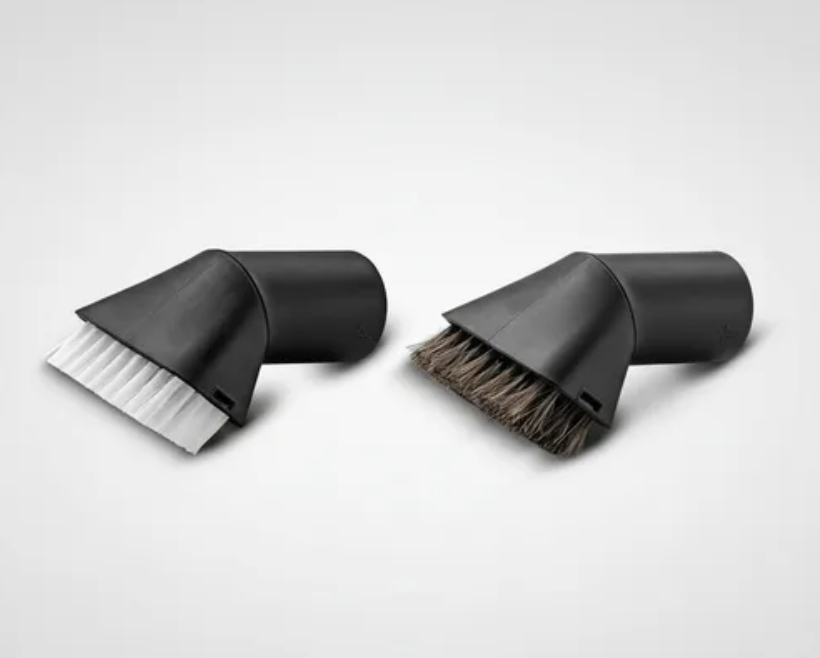 El kit de pinceles aspiradores es un juego de accesorios compuesto por dos pinceles aspiradores de cerdas duras y blandas, respectivamente. El pincel aspirador de cerdas duras se utiliza para limpiar a fondo las superficies tapizadas y con alfombras (p. ej., las alfombrillas o los asientos). El pincel aspirador de cerdas blandas permite limpiar las superficies delicadas sin dañarlas (p. ej., el salpicadero y la consola central). El práctico kit de pinceles aspiradores es apto para todas las aspiradoras multiuso Home & Garden de Kärcher.