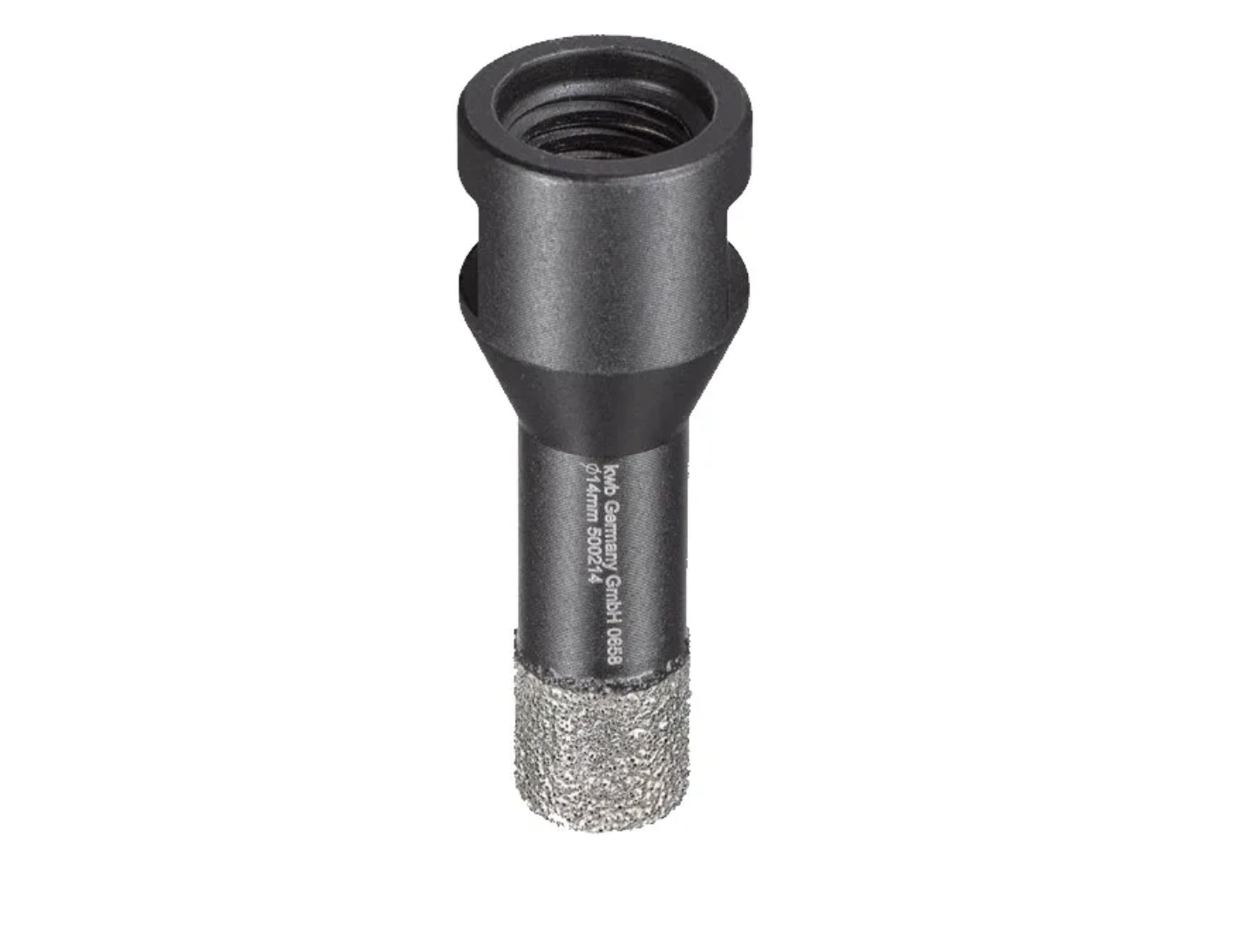 Cortes con revoluciones elevadas sin refrigeración adicional, sierra de corona revestida con diamantes industriales, rosca de alojamiento M14, práctico envase de tubo de rosca reutilizable, para baldosas, cerámica, gres, porcelanato, gneis, granito, mármol y pizarra.