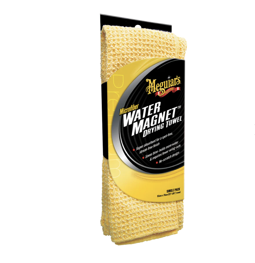 Olvídate de todas las toallas comunes de secado, nada se compara con una Water Magnet de Meguiar’s. Tal cual como su nombre lo dice, atrae y absorbe el agua hasta dos veces más que una toalla común. Lávala con agua fria en la lavadora y tendrás una toalla impecable para tu próximo lavado.